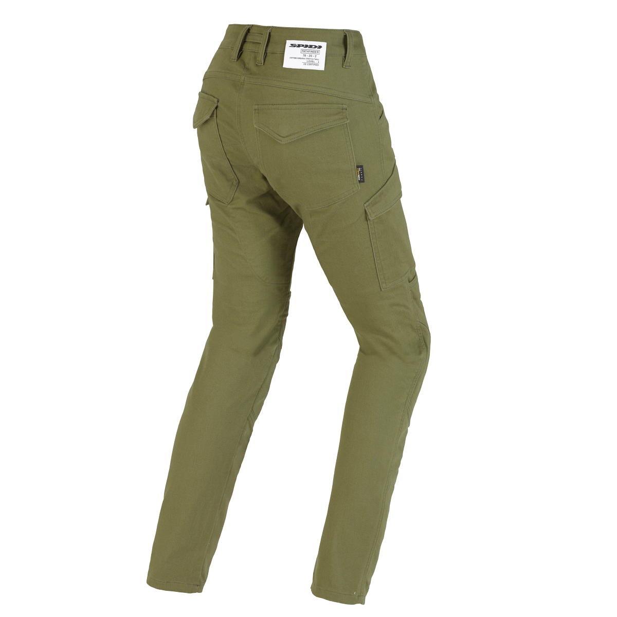 SPIDI Pathfinder Lady pants: the 6-pocket motorcycle cargo made to last forever. Made with Cordura@/Cotton blend fabric, it holds Warrior lev.1 adjustable and removable protectors on the knee and it's ready to hold optional Warrior Lite hip protectors. It's certified in class A according to the (UE)2016/454 Regulation.